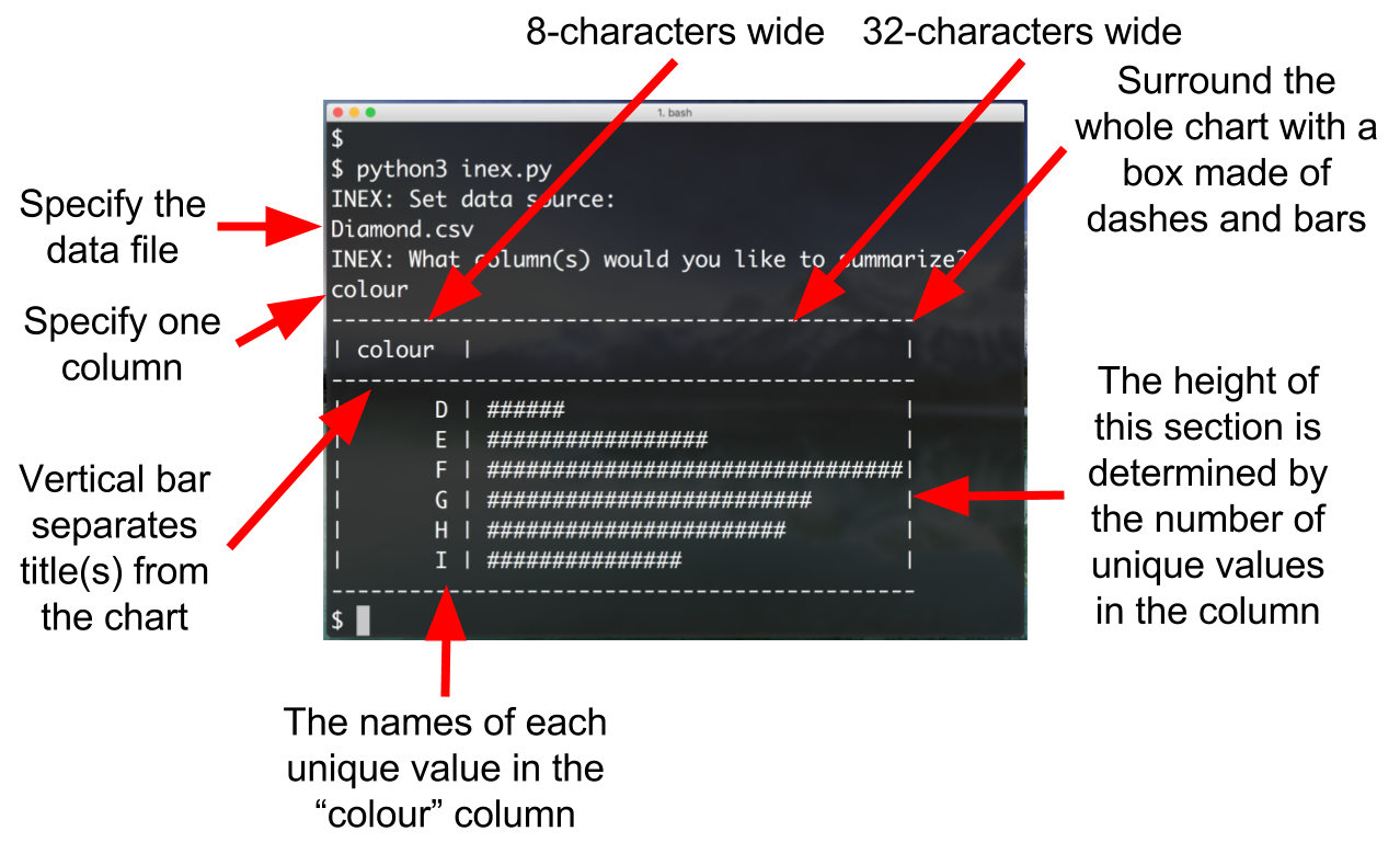 If only one column is specified by the user, INEX will generate a bar-chart in which: